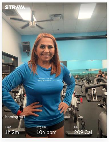 75.0 minutes of vigorous activity (cardio class, HIIT, spinning) = 8.5 miles